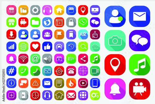set of smartphone with social media icon in cute design. (smartphone with social media application, with various icon and layout in use) easy to modify