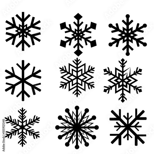 snowflake, christmas, snow, winter, vector, snowflake, set, decoration, cold, illustration, design, pattern, ice, christmas, holiday, season, icon, flake, symbol, art, ornament, shape, element, crystal, silhouette