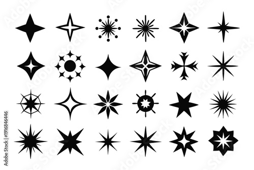 set of star and sparkle icon silhouette line art vector illustration with a white background