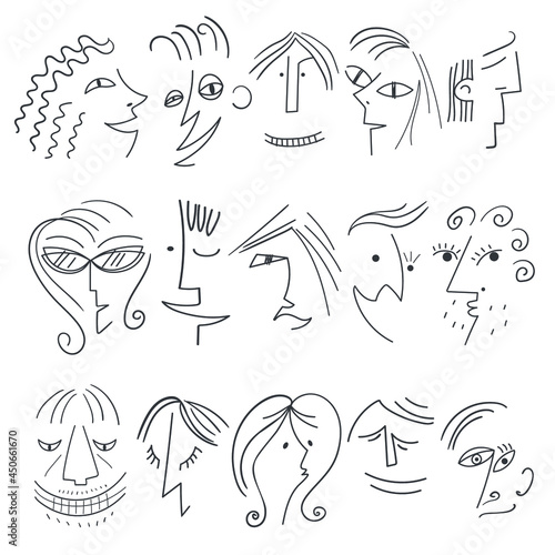 face, set, avatar, abstract, line art, minimalist, black, decorative, hand-drawn, curve, simple, minimal, adult, character, beauty, creative, woman, man, eye, lip, eye, flat, lady, man, cartoon, isolated, contour, fashion, head, human, artistic, collection, people, print, person, style, drawing, background, woman, icon, vector, portrait, vignetting, line, design, graphic, art