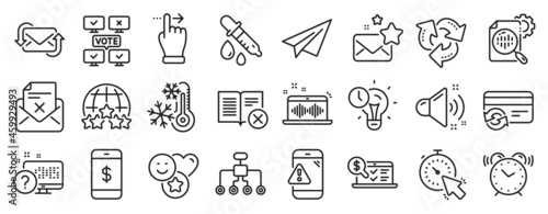 icon, chemistry, pipette, favourite, mail, warning, message, music, making, time, management, loud, sound, reject, letter, reusing, online, accounting, refresh, timer, touch screen, gesture, freezing, smile, paper, plane, book, quiz, change, card, smartphone, payment, restructure, alarm, clock, rating, star, statistic, quality, delegate, deny, laboratory, campaign, set, vector, line, symbol, isolated, outline
