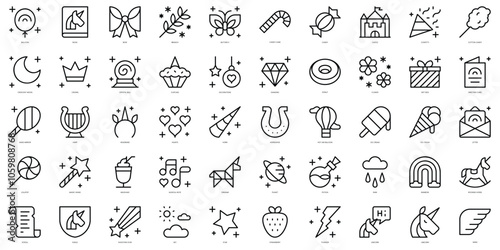 Set of thin line unicorn Icons. Vector illustration