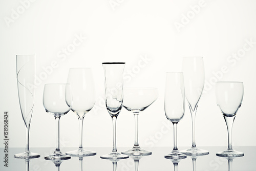 champaign, wine, glasses, holiday, empty, wedding, event, background, goblet, celebration, set, transparent, concept, anniversary, party, bar, wine glass, design, arrangement, elegance, assortment, collection, different, shape, crystal, festive, elegant, decoration, alcohol, drink, beverage, beauty, beautiful, illuminated, nobody