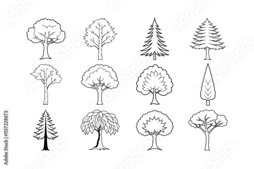 Set of Tree Icons - Minimalist, Flat, and Vector Style for Microstock Platforms