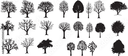 tree, silhouette, vector, nature, tree branch, illustration, forest, leaf