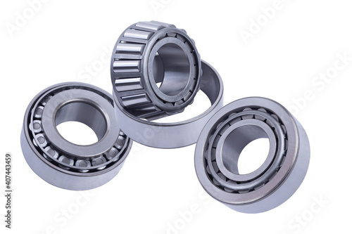 set of truck roller bearings on white background isolated. front and rear view. Part of the car
