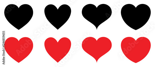 Set of Valentine's day hand drawn decorative heart elements. Set of heart icons different style red and black color. Heart elements for valentine message. Love passion concept. Romantic design.