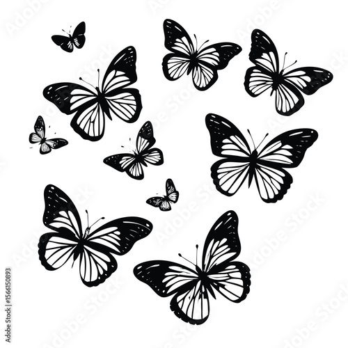 butterfly, insect, vector, nature, illustration, set, design, fly, pattern, butterfly, silhouette, wing, spring, wing, collection, tattoo, beauty, decoration, summer, animal, seamless, colourful, art, black, colours