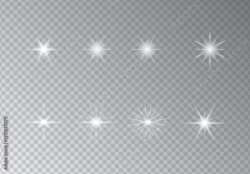Set of Vector glowing sparkling stars, vector illustration on transparency