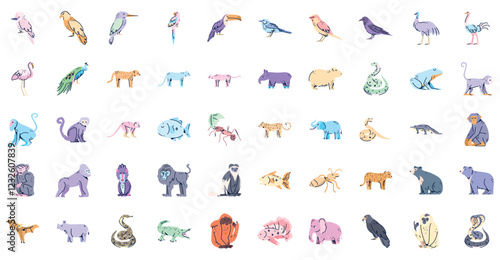 Set of vector icons of animals on white background