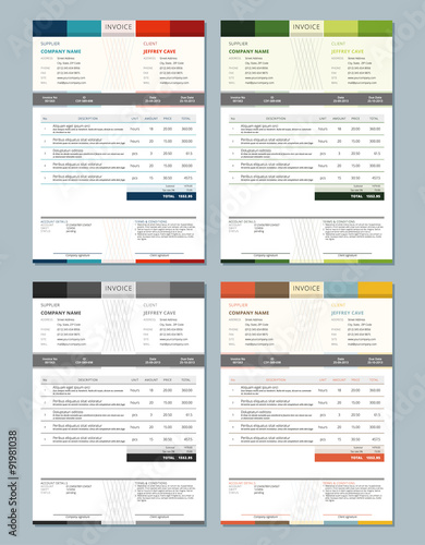 Set of Vector Invoice Design Templates. 4 Color Themes