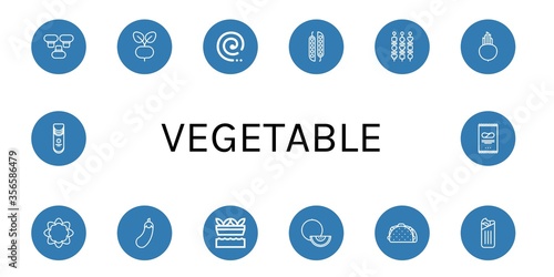 vegetable, icon, set, vector, mushroom, radish, mosquito, coil, pea, shish, beet, cauliflower, aubergine, gardening, melon, taco, crisp, illustration, isolated, food, symbol, flat, signs, design, element, fresh, graphic, white, background, nature, object, organic, nourishment, diet, vegetarian, healthy, natural, logotype, line, meal