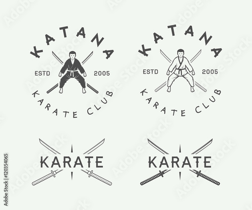 Set of vintage karate or martial arts logo, emblem, badge, label