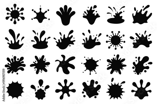 set of water splash silhouette line art vector illustration with a white background