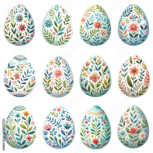 Set of watercolor floral easter eggs. Floral easter eggs collection. Easter elements.
