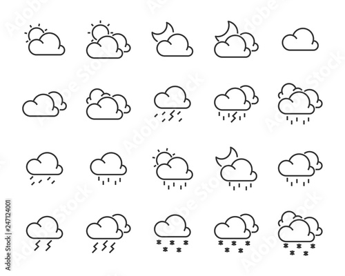 set of weather icons, such as cloud, rain, sun, forecast, water, storm