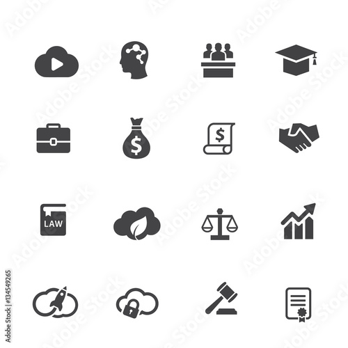 Set of web icons for law lawyer marketing business finance education and transport