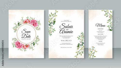 Set of wedding invitation card templates with watercolor painting of flowers and leaves