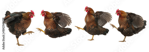 Set Of Welsummer Chicken (Hen) isolated on white background, (Gallus gallus domesticus) PNG