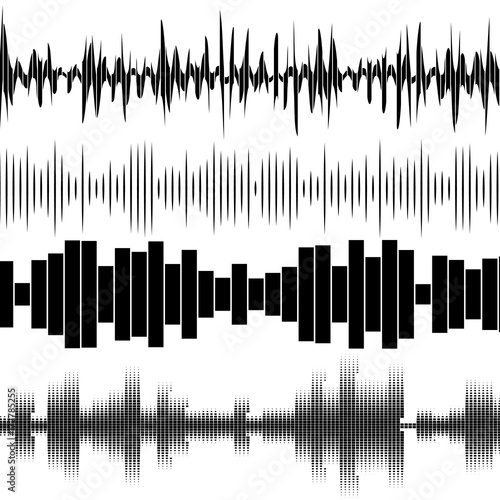 Set sound waves set. Audio equalizer technology, pulse musical. Vector illustration.