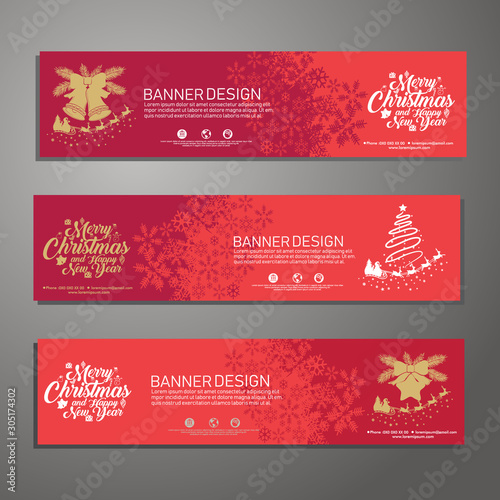Set template design Merry Christmas horizontal banner. Christmas offer. Vector.