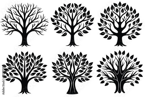 Set tree vector white background silhouette nature silhouette black forest fall winter outdoor isolated tropical