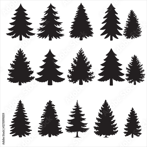 set vector various fir tree silhouettes