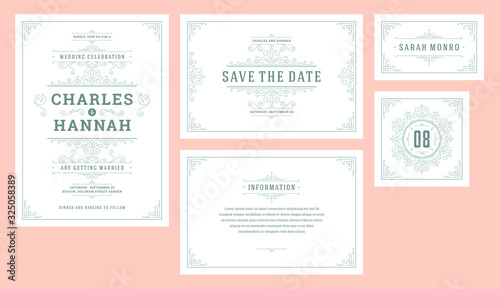 Set wedding flourishes ornaments invitations cards.