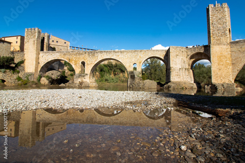 Seven-span defensive bridge, built by the Romans in the XI-XII centuries. in Besalu, Spain