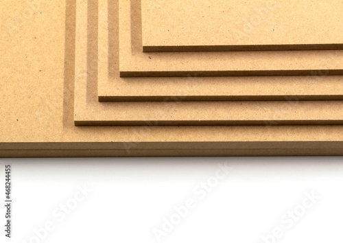 Several mdf boards, cut to certain dimensions, stand on a white background.