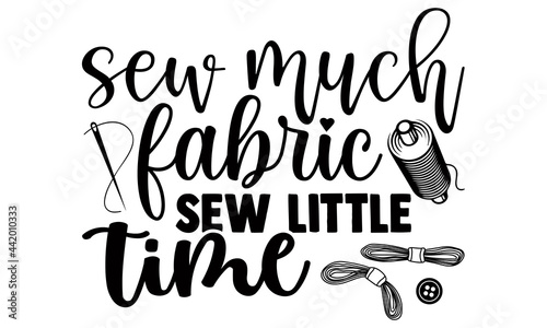 Sew much fabric sew little time- Sewing t shirt design, Hand drawn lettering phrase isolated on white background, Calligraphy graphic design typography element and Silhouette, Hand written vector sign