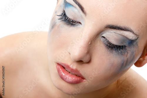 woman, sexy, beautiful, wet, girl, glamour, eye, cry, tear, make-up, lip, sensuality, water, clean, laundered, healthy, female, beauty, care, skin, face, blue, health, caucasian, portrait, fresh, body, relax, wellness, young, attractive, pretty, freshness, dripped, hygiene, bathe, health care, well-being, purity, bodycare, hand