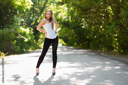 adult, alluring, asphalt, attractive, beautiful, black, blond, blond, blue, caucasian, corset, cute, elegance, fashion, female, girl, gorgeous, green, heel, inviting, lady, leggings, lovely, model, nature, nice, 1, people, person, pink, pretty, road, sensual, sexy, shoe, slim, smart, smiling, standing, stylish, summer, sunlight, sweet, tree, tunnel, way, white, woman, young