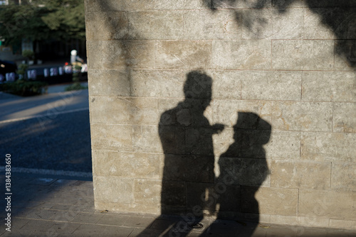 Shadow of a man and woman's pre-wedding photo to foster love. Shadow photo of a girl and a boy.