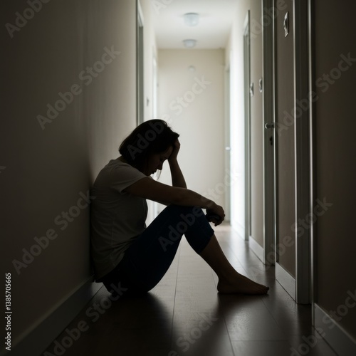 woman, sad, upset, stressed, lonely, floor, hallway, silhouette, despair, mental health, grief, emotional, door, business, people, window, person, fashion, hotel, looking, home, beauty, lady, suit, elevator, model, office, open, businessman