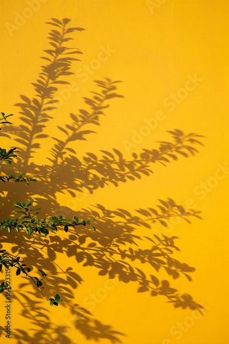 shadow, wall, yellow, plant, leaf, tree branch, sunlight, nature, tree, abstract, texture, design, pattern, light, summer, garden, art, colours, shape, surface, detail, natural, bright, vibrant, flora, botany, foliage, graphic, element, artistic, decorative, minimal, tropical, growth, sun, style, wallpaper, shade, structure