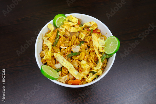 Shahi Chicken Pasta is made with chicken meat, egg, pasta, tomato, carrot, onion, lemon, garlic, green chili, cabbage and other ingredients. It is very tasty to eat and Spicy Flair