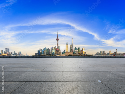 Shanghai,China modern city architecture and empty square floor
