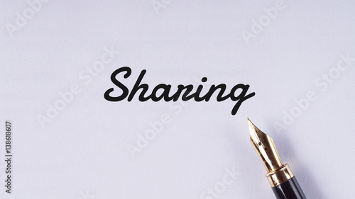"Sharing" words written on white paper using fountain pen - business and finance concept