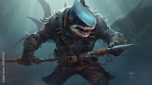 shark warrior, digital art illustration, Generative AI