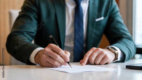 businessman, signing, document, contract, agreements, deal, pen, writing, office, corporate, formal, suit, attaching, watch, signature, legal, paperwork, finance, professional, executive, success, job, career, work, male, business, hand, paper, people, working, table, meeting, closeup, desk, person, businesswoman, men at work
