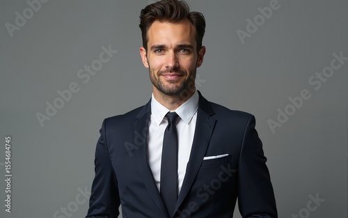 Sharp-dressed man: Classic suit, stylish tie, confident gaze. A modern professional look for success. High quality