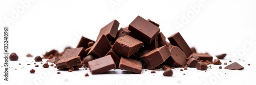 Shattered dark chocolate tumbling, isolated white , still life, falling