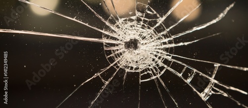 Shattered glass closeup; night; bokeh background; damage