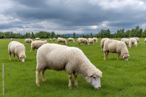 sheep, grazing, pasture, grass, farm, agriculture, farm animal, wool, cloud, sky, landscape, rural, nature, field, green, white, flock, animal, farming, meadow, countryside, outdoors, idylli, scenic, summer, spring, herd, cloudy sky, dramatic sky
