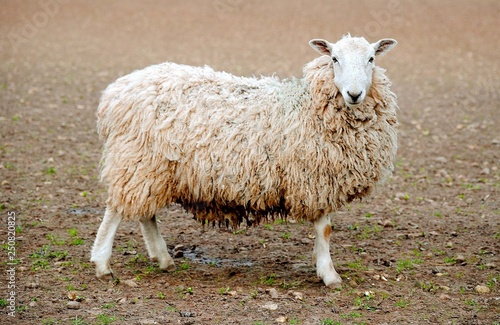sheep, isolated, white, animal, background, farm, mammal, livestock, view, looking, standing, ewe, side, one, dike, grass, horizontal, agriculture, rural, alone, shot, meadow, domestic, farming, pastu