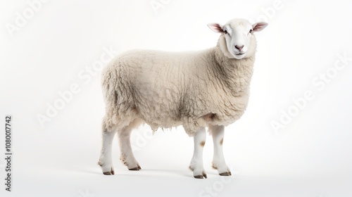 Sheep Standing Calmly Against a Light Background, Ideal for Agriculture, Nature, or Animal-Themed Projects