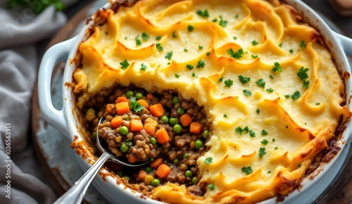 Shepherd's Pie with Vegetables and Golden Mashed Potatoes (American Cuisine)