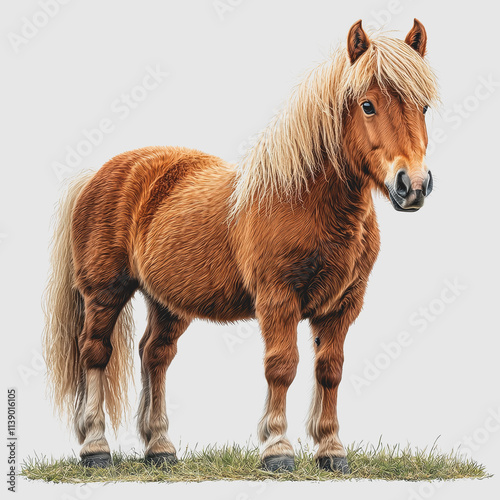 Shetland Pony Standing on Grass in a Lush Green Field Captured with Natural Lighting and Soft Focus Composition Showcasing the Beauty of Equine Life and Nature Photography