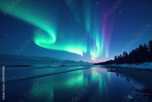 Shimmering aurora borealis, deep indigo twilight, swirling nebulae, heavenly, spiritual, borealis